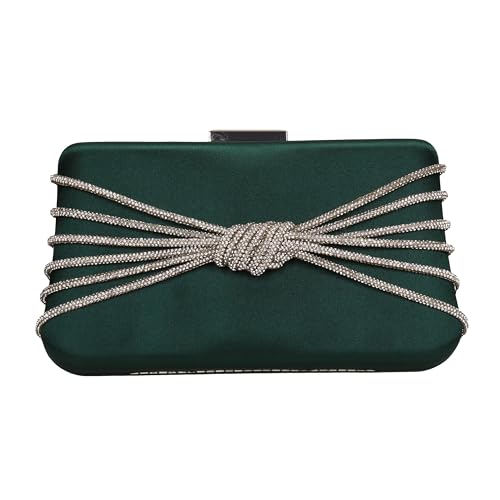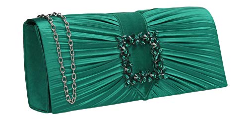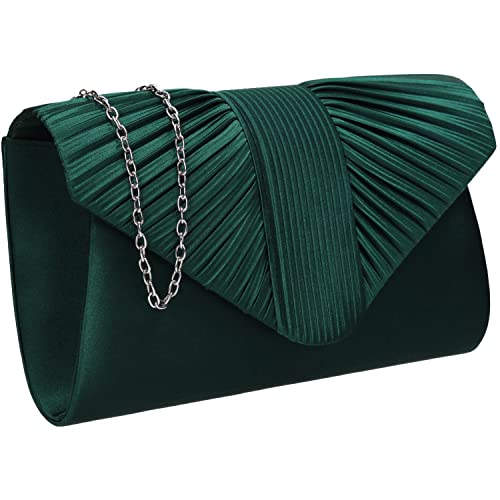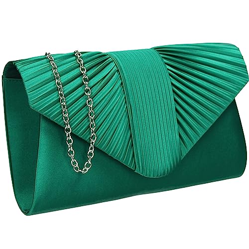 Jywmsc Dam satin aftonväska elegant satin plissé kväll kuvertväska för kvinnor silver bröllop handväska, Dark Green