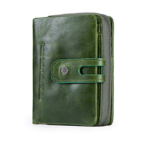 Kontakter äkta läder kvinnor trippelvikt mynt korthållare kuvertväska plånbok, gRÖN, En storlek, Modern