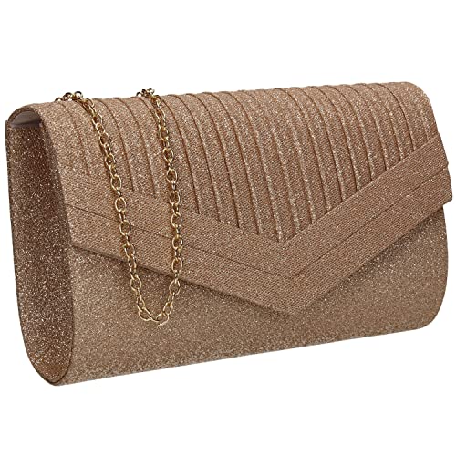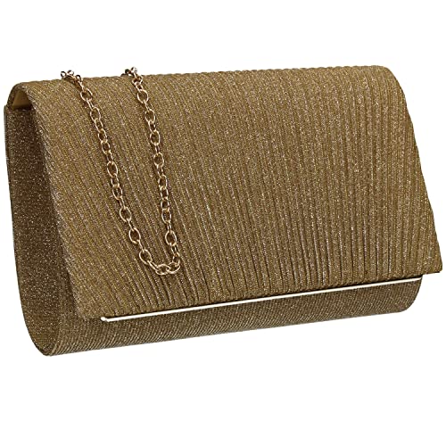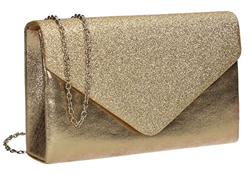 Swanky Swans dam Kelly glitter kuvert kuvertväska fest balväska koppling guld (champagne), 5 x 12,5 x 22 cm (B x H x L), Guld (Champagne), 5x12.5x22 cm (W x H x L)