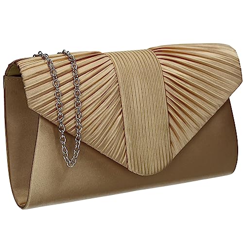 Miss Lulu kuvertväska för kvinnor, aftonväska för bröllop, stor rosett mjuk med fin glitter, syntetisk handväska, bal fest semesterväskor, 2-3 Guld, en storlek