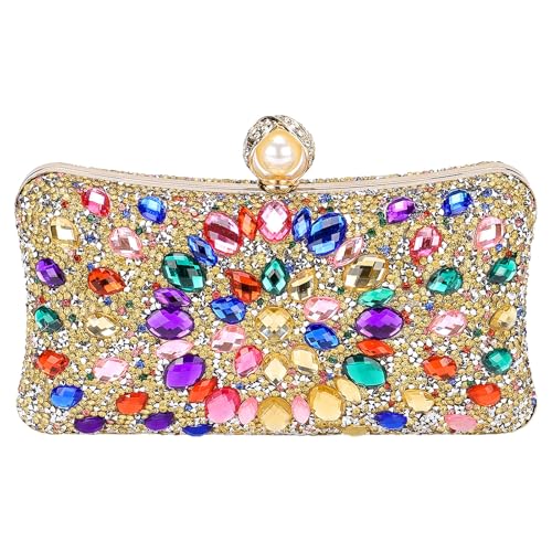 QUARKZMAN kvällsväskor för kvinnor, gnistrande kristall strass kuvertväska med kedja axelrem för bröllop fest kväll helg, guld flerfärgad, Guld