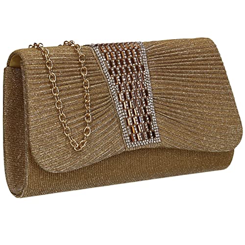 CORIOS Strass aftonväska för kvinnor paljett kuvertväska brud bröllop handväska glitter axelväska med avtagbar kedja lyxig kristallhandväska crossbody väska för bankettfest cocktail bal, Guld, L,