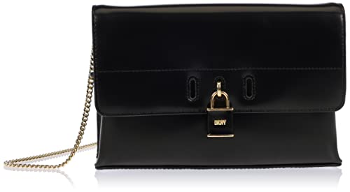 DKNY damer palmer kuvertväska i slätt läder crossbody, Svart/guld