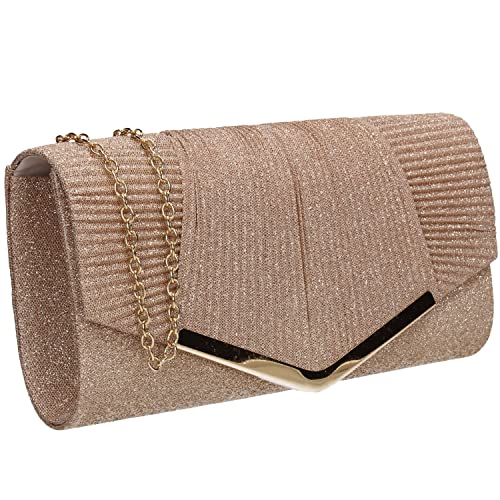 SwankySwans Ruth dam glittrande glänsande fest bal bröllop kväll kuvertväska handväska, Rosa guld