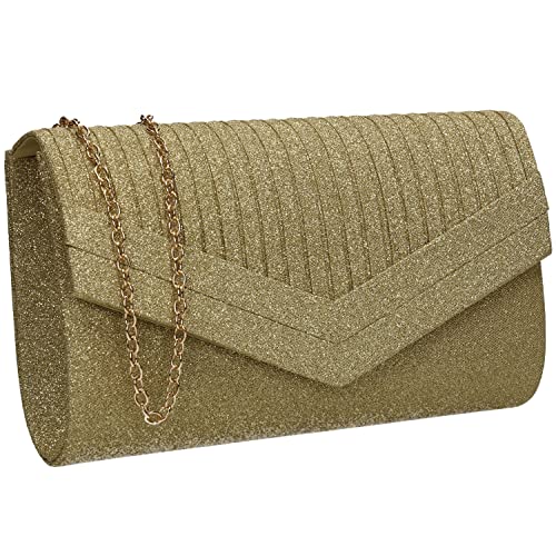Shengxi Dam kuvertväska Glittrande Kväll Kuvertväska Elegant Axelväska med Löstagbar Glitter Kedja Kuvertväska för avslutningsbal, Fest, Guld