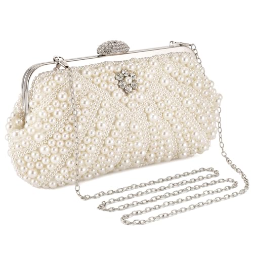 BAIGIO Pärla kuvertväska för kvinnor kväll bröllopsfest brud handväska damer pärlor kuvertväska, Vit S10, en storlek