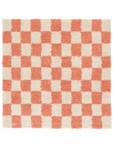 RugVista Chessie, Matta, 200 x cm, Kvadratisk, Lång lugg, Vardagsrum, Sovrum, Endast kemtvätt, oeko_tex_100, Coral/Off Vit