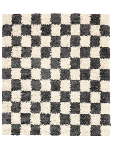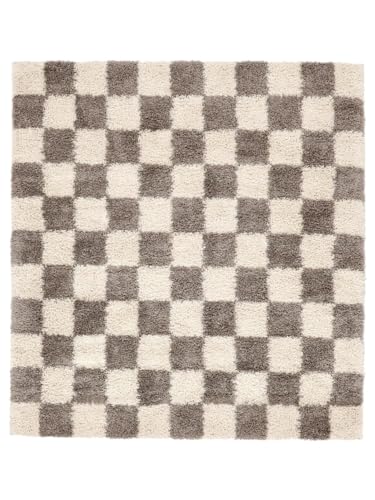 RugVista Chessie, Matta, 200 x cm, Kvadratisk, Lång lugg, Vardagsrum, Sovrum, Endast kemtvätt, oeko_tex_100, Mörk Grå/Off Vit