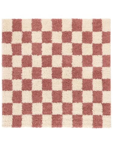 RugVista Chessie, Matta, 200 x cm, Kvadratisk, Lång lugg, Vardagsrum, Sovrum, Endast kemtvätt, oeko_tex_100, Rosa/Off Vit