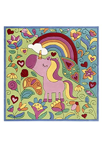 Wecon Home Doodle-matta, mysig, mjuk, härlig enhörning, barnmatta med söt enhörning, handgjord, kvadratisk (150 x 150 cm)