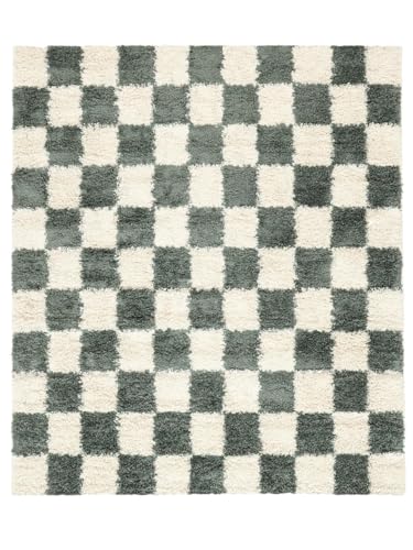 RugVista Chessie, Matta, 200 x cm, Kvadratisk, Lång lugg, Vardagsrum, Sovrum, Endast kemtvätt, oeko_tex_100, Grön/Off Vit