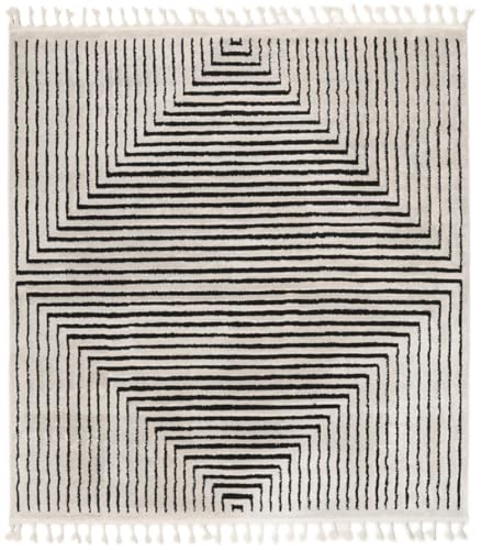 RugVista Larache, Matta, Shaggy/Handloom, 240 x cm, Kvadratisk, Medellång lugg, Endast kemtvätt, oeko_tex_100, Krämvit Svart