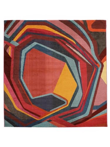 RugVista Kaleidoscope, Matta, Moderna mattor, 200 x cm, Kvadratisk, Medellång lugg, Vardagsrum, Matsal, Sovrum, Kök, Endast kemtvätt, oeko_tex_100, Multi