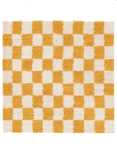 RugVista Chessie, Matta, 200 x cm, Kvadratisk, Lång lugg, Vardagsrum, Sovrum, Endast kemtvätt, oeko_tex_100, Gul/Off Vit