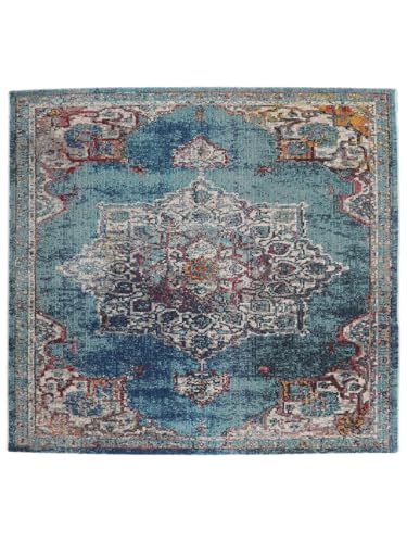 RugVista Chillon, Matta, Moderna mattor, 200 x cm, Kvadratisk, Medellång lugg, Vardagsrum, Matsal, Sovrum, Kök, Endast kemtvätt, oeko_tex_100, Ljus Blå/Multi