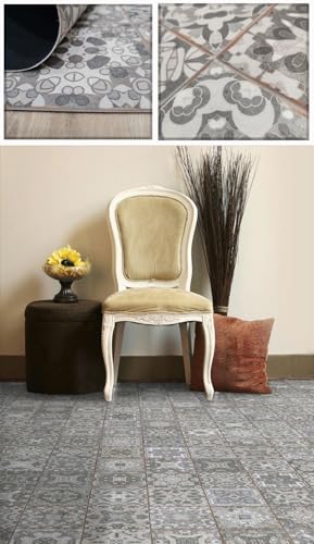 Tadi & Imperio1979 Vintage Blommönster Vintage Grå Vintage Kvadratisk Vinyl Lång Matta för Kök, Tvättstugor, Korridor, Toalett, Sovrum Baksida PVC Halkfri, 100 x 100 cm.