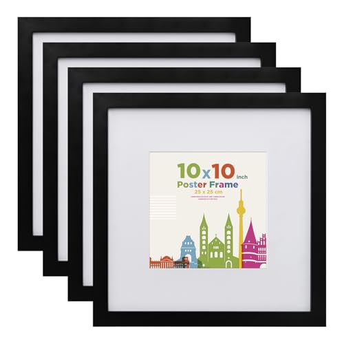 Egofine Bildram 25 x 25 cm, träram med akrylglas, MDF-ram set om 4, passepartout för foton 15 x 15 cm, kvadratisk ram för väggmontering för vägg eller bordsdekoration, svart