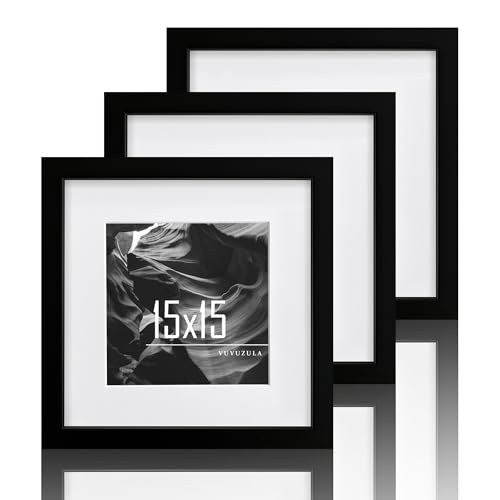 VUVUZULA bildram 15 x 15 cm svart trä kvadratisk set om 3 träram fotoram MDF-ram med passepartout 10 x 10 cm
