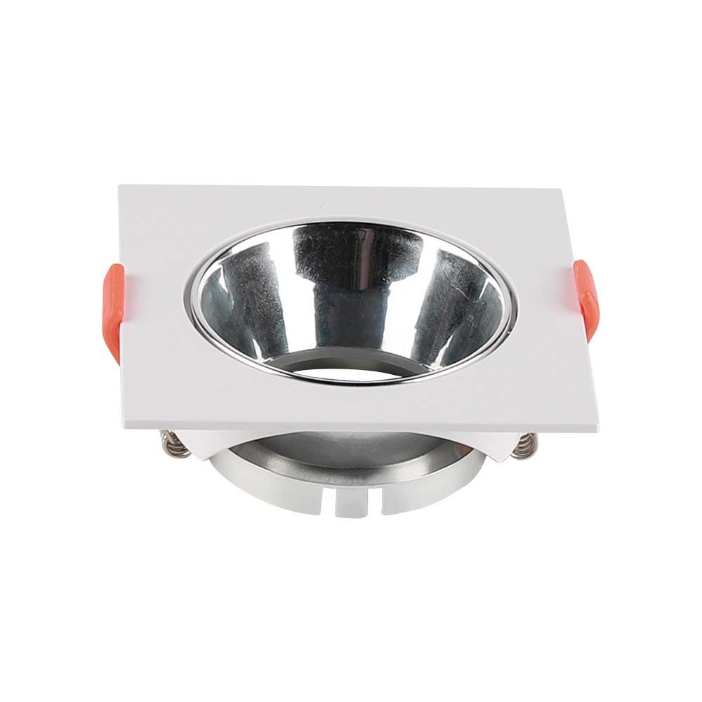 GU10 - lampa, kvadratisk, vit ram + krom reflektor