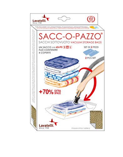KANGURU LAVATELLI SACCO SPACE M, Set med 2 vakuumpåsar, utrymmesbesparande, anti-mögel, anti-kvalster, mått Medium 60x90cm, perfekt för filtar av handfat