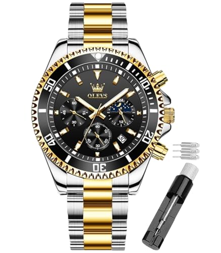 OLEVS Grön urtavla klockor för män mode analog kvarts vattentät kronograf guld silver rostfritt stål klocka affärer klassisk lyx stort ansikte lysande multifunktions män armbandsur, 1, armband