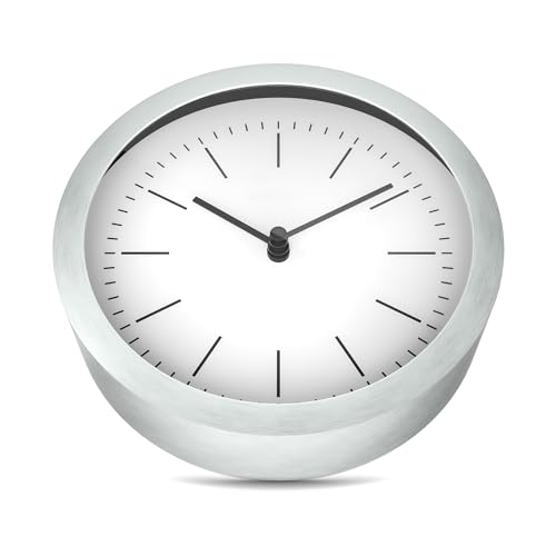 MEBUS 2-i-1 väggklocka och bordsklocka med borstat aluminiumhölje I utan tickande ljud tack vare exakt kvartsurverk I vitt/silver I 15 cm liten