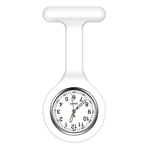 Vicloon Systerörhängen med klämma, sjuksköterska klockor, stretchigt silikonskydd för att förhindra brott, glöd pointer, kvartsurverk, insticksklocka för sjuksköterskor och läkare, VIT, Medicinsk