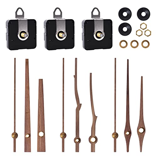 3 uppsättningar kvartsurverk och händer, klockrörelsemekanism med valnöt trä moturs av 3 typer, tyst urverk ersättningssats för väggklocka 30 cm (12 tum) (lång 20 mm)