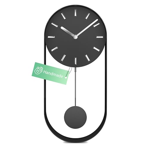 Mebus modern pendelklocka väggklocka stor utan tickande ljud I handgjord av metall I kvartsurverk I 40 x 20 cm I färg grå svart