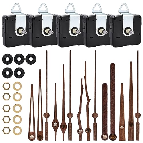 Kvartsurverk och moturs, 5 stycken klockrörelsemekanism, tyst urverk, ersättningssats med valnötsträ moturs, väggklocka rörelsemekanism, urverk för väggklocka (lång skaft 20 mm)