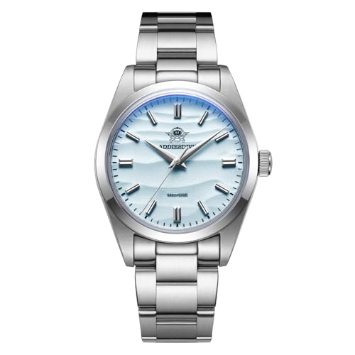 ADDIEDIVE 36 mm kvartsur, enkelt armbandsur för män och kvinnor, VH31 kvartsurverk KI Mineral Bubble Conves Crystal Vattentät 100M AD2030, Korallblå, 220mm, Rymmer: