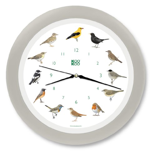 KOOKOO sångfåglar kvartsurverk sidengrå, den sångande fågelklockan, rund väggklocka med naturliga fågelröster
