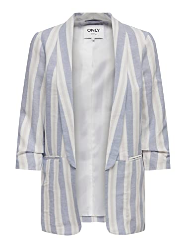 ONLY Dam ONLELLY-Caro 3/4 Linen TLR NOOS Blazer, engelsk manor/ränder: Cloud Dancer & Grey Violet, 38, Engelska manor/ränder: molndansare och grå violett, 38