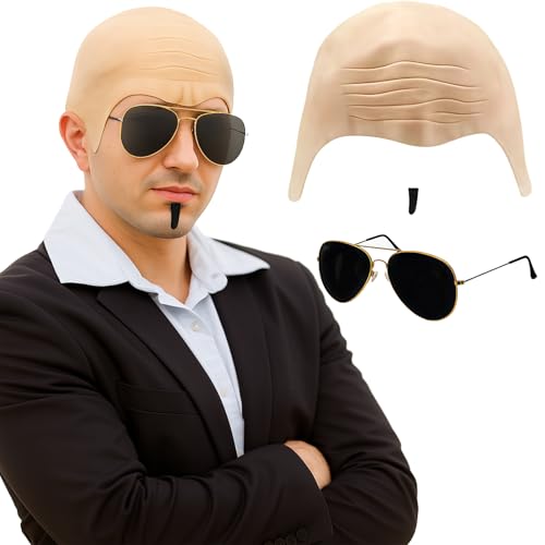 AWAVM 3 st vuxen Mr. Worldwide tillbehörsset, kändisar set, nakna skallar, svarta solglasögon, svarta lappskägg, män och kvinnor musikidol kändisar mode tillbehörsset