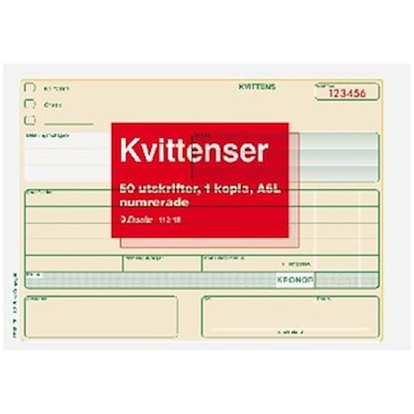 Kvittens A6 Liggande, 1 kopia, numrerad, 5st 5st