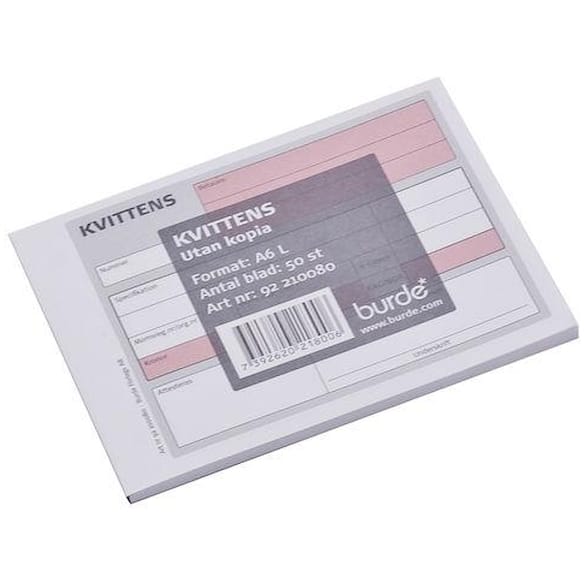 Kvittens A6 Liggande utan kopia, 50 blad 10st