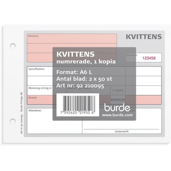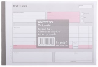 Kvittens A65 med kopia, 2x50 blad, 5st 5st