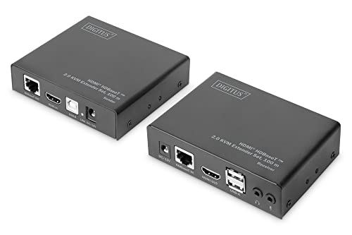 DIGITUS HDMI KVM Extender - 4k/60Hz - Sändare & Mottagare - HDBaseT 2.0 - HDMI 1.4 - USB 2.0 - Räckvidd upp till 100m - Patchkabel Cat 6A och högre