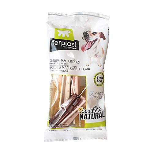 Ferplast GOODBITE NATURAL M Propellerben leksak för tandhygien, 4 smaker kyckling nötkött spannmål, medium stor hund (7–20 Kg), naturlig, 10 stycken med 23 g