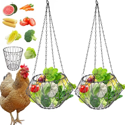GHWMYD foderställ för höns, 2-pack vikbar fjäderfä grönsaker kycklingmatare korg med 43 cm hängande kedja, justerbar fjäderfä/kyckling/anka/kanin/gås grönsakspett leksak