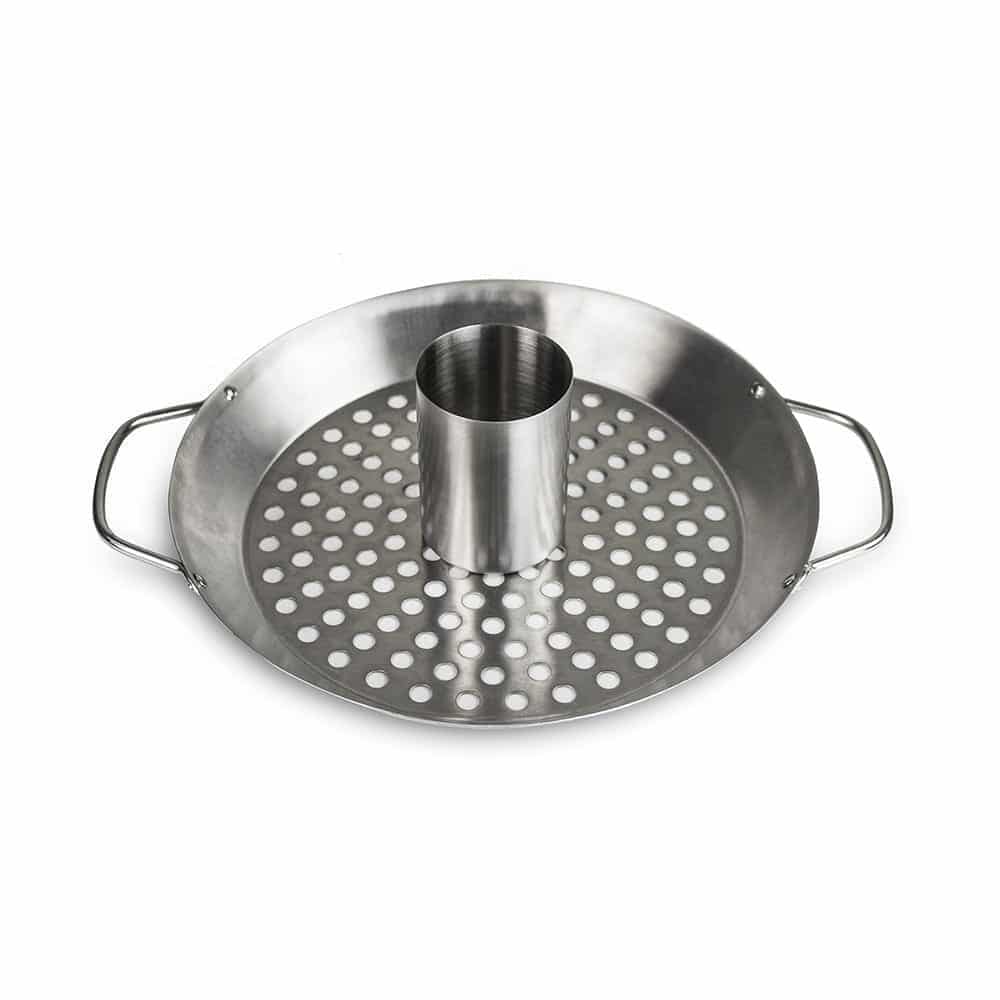 onlyfire Rostfritt stål fjäderfä rostinsats, ölburk kycklinghållare med stekpanna för Weber Gourmet grillsystem