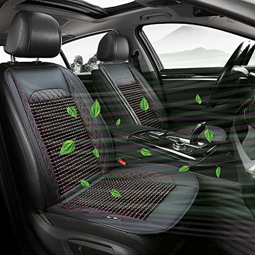 Kylande bilstolskudde, träpärla bilstol kylkudde, 12 V/24 V bilkylning säte luftflöde ventilerad kudde, 3 vindhastigheter justerbar, ventilerat kylsätesskydd för bil (röd, 12 V)