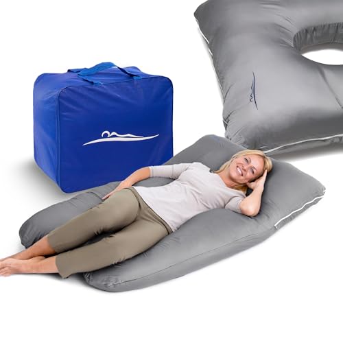 MAKOSAS Komfortkudde ORIGINAL Premium ergonomisk kylande gosig kudde | Kroppskudde | sidosovkudde för vuxna – för bättre sömn 100 x 150 cm (grå – bambu)
