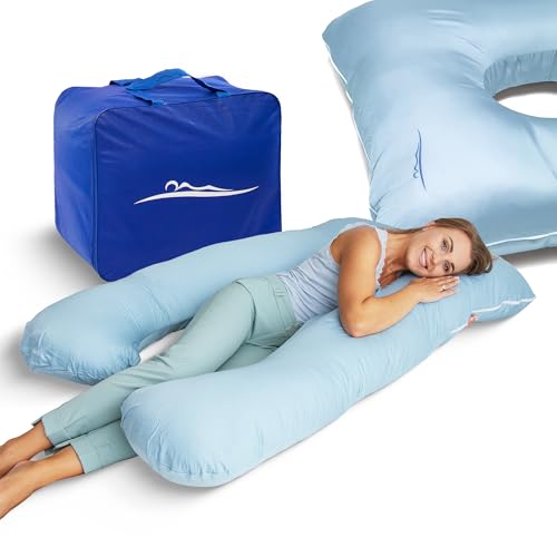 MKS sidosovkudde med överdrag | Komfortkudde (100 x 150 cm) | Sovkudde | sidosovkudde och form | Ergonomisk premium kylande gosig kudde (bambu) / ljusblå)