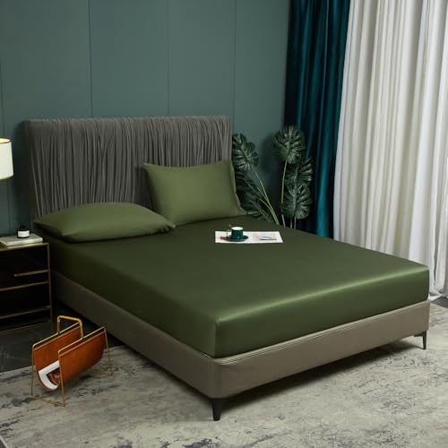 Bambu spännlakan 140 x 200 cm grön olivgrön antibakteriell mjuka kylande 100 % bambu set allergivänliga resårsäng lakan hög madrass upp till 25–30 cm