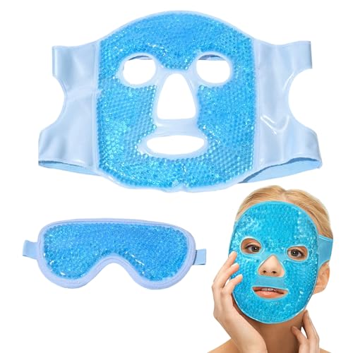 BeeVines kylande ögonmask, 2-pack gel för svullna ögon, ögonmask för mörka ringar, torra ögon, kall och varm sömnkompress för postoperativa besvär, svullna ögon (004 Blå ögon- och ansiktsmask)