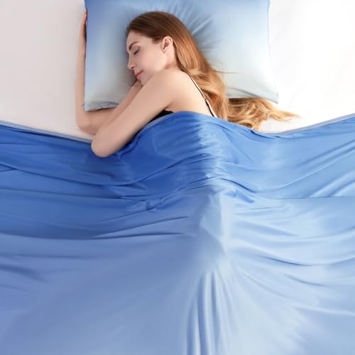 LDFHOIN Kylfilt för människor, kylande filt av naturlig bambufiber istäcke för varm sover, sval filt, överkast, självkylande sommarfilt, absorberar kroppsvärme blå 200 x 150 cm