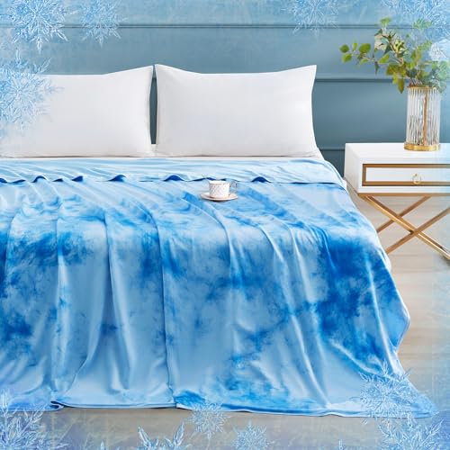Elegear Batikfärgad kylfilt för nattsvettningar, Q-Max>0,5 Arc-Chill sommar coolt fiberöverkast för säng soffa resor vuxen barn varm sovande, komfort, lätt, tvilling/dubbel, 150 x 200 cm, blå