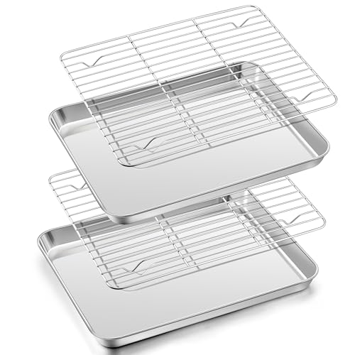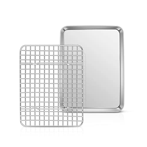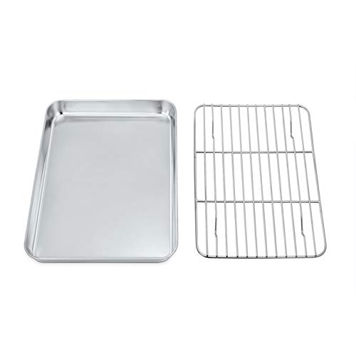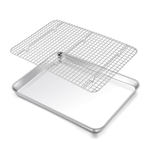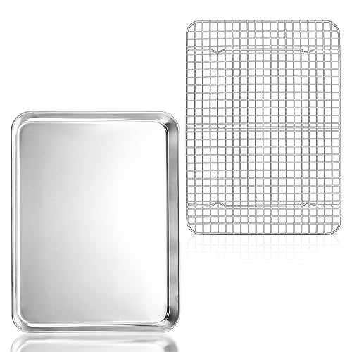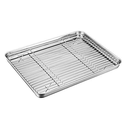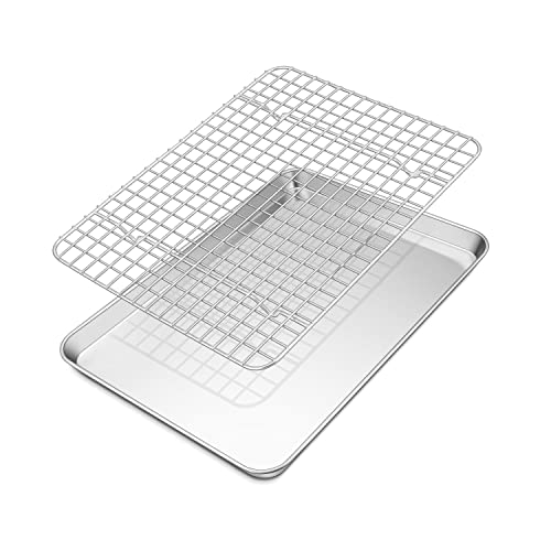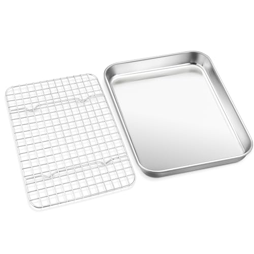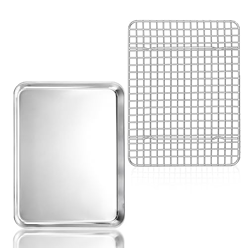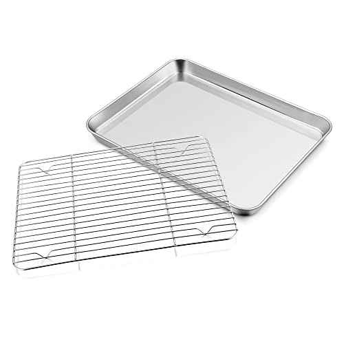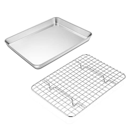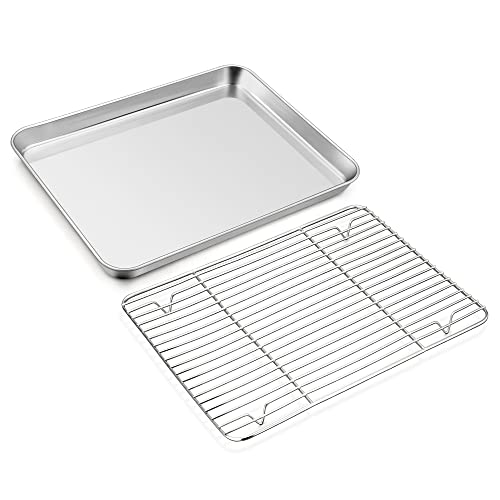 TEAMFAR Bakplåt med kylgaller, rektangulär liten bakform, kakplåt, rostfri ugnsplåt med kylgaller för bakning, giftfri och hälsosam, diskmaskinssäker, 26,3 x 20,5 x 2,5