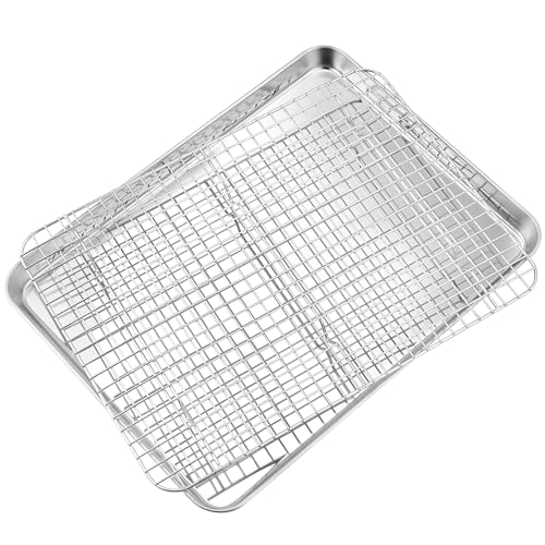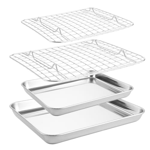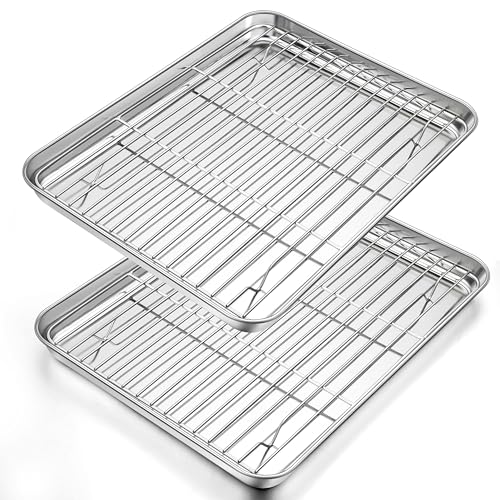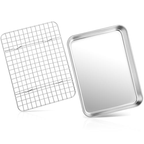 TEAMFAR Bakplåt med kylgaller, liten bakform i rostfritt stål, miniugnsskål och kakgaller kylgaller, 23,6 x 17,8 x 2,5, hälsosam och giftfri, lätt att rengöra och diskmaskinssäker